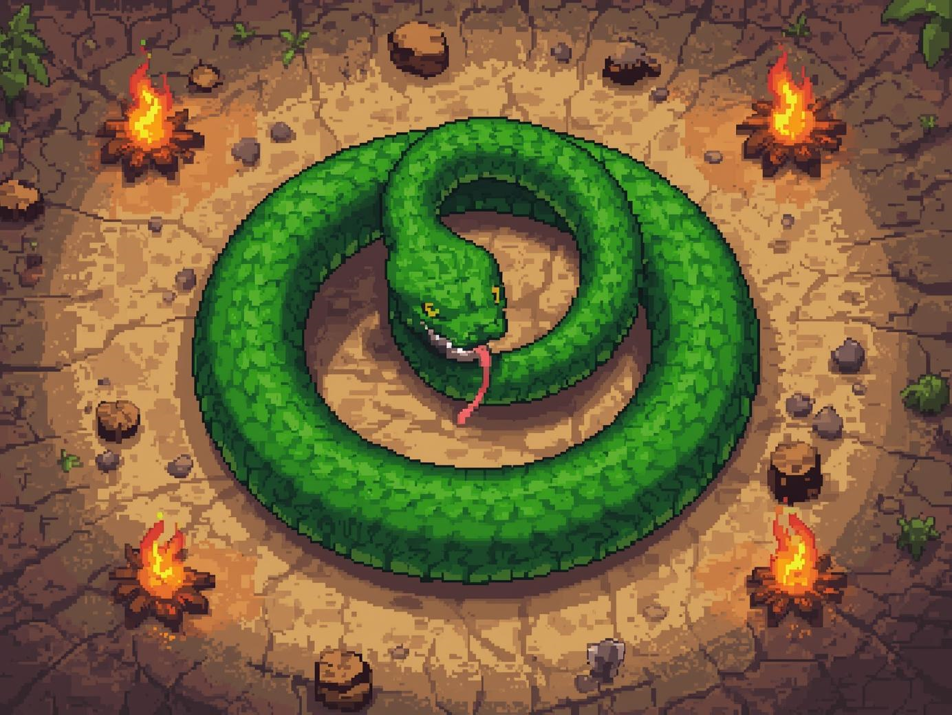 As laterais representando o FOGO matam a cobra, por isso é melhor ficar longe delas.
